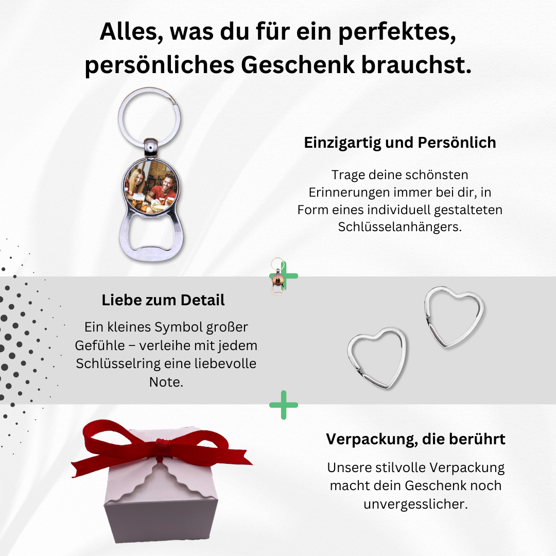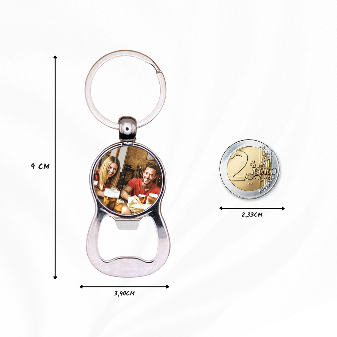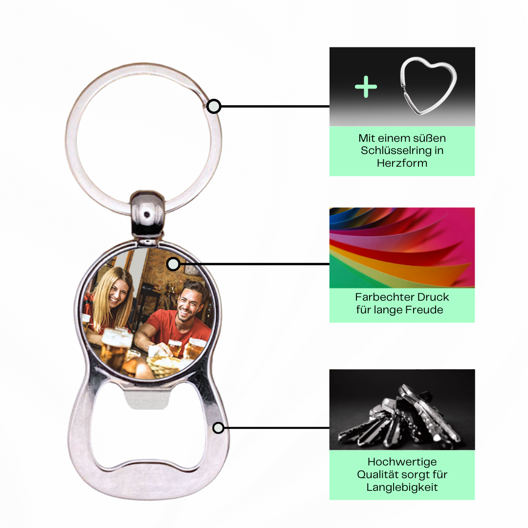 🍻 IMMER DABEI, IMMER BEREIT: Sei es ein spontanes Treffen mit Freunden oder ein geplantes Picknick im Park – mit diesem Schlüsselanhänger haben Sie Ihren Flaschenöffner immer dabei und Ihr Lieblingsfoto immer im Blick.